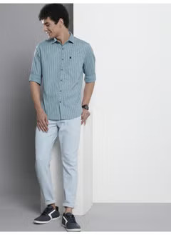 Material: Cotton Care Instructions: Machine Wash Neckline: Collared Neck Sleeve Type: Long Sleeve Fit: Regular Occasion: Casual Colour Name: Blue Pattern: Stripes Collar Style: Cutaway Department: Men Size: S/M/L/XL/2XL