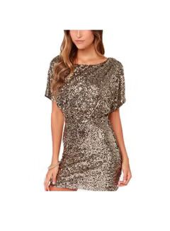 Material: Polyester Neckline: Boat Neck Sleeve Type: Short Sleeve Fit: Slim Skirt/Dress Length: Mini Occasion: Party Colour Name: Gold Department: Women Size: m/l/xl/2xl